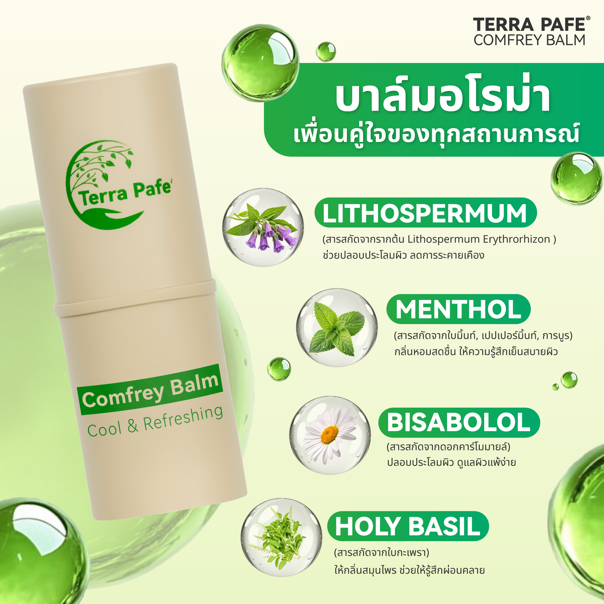 TERRA PAFE COMFREY BALM 7 g บาล์มสมุนไพร ขนาดพกพา ใช้ดมและทาในหลอดเดียว ผ่อนคลาย สดชื่น