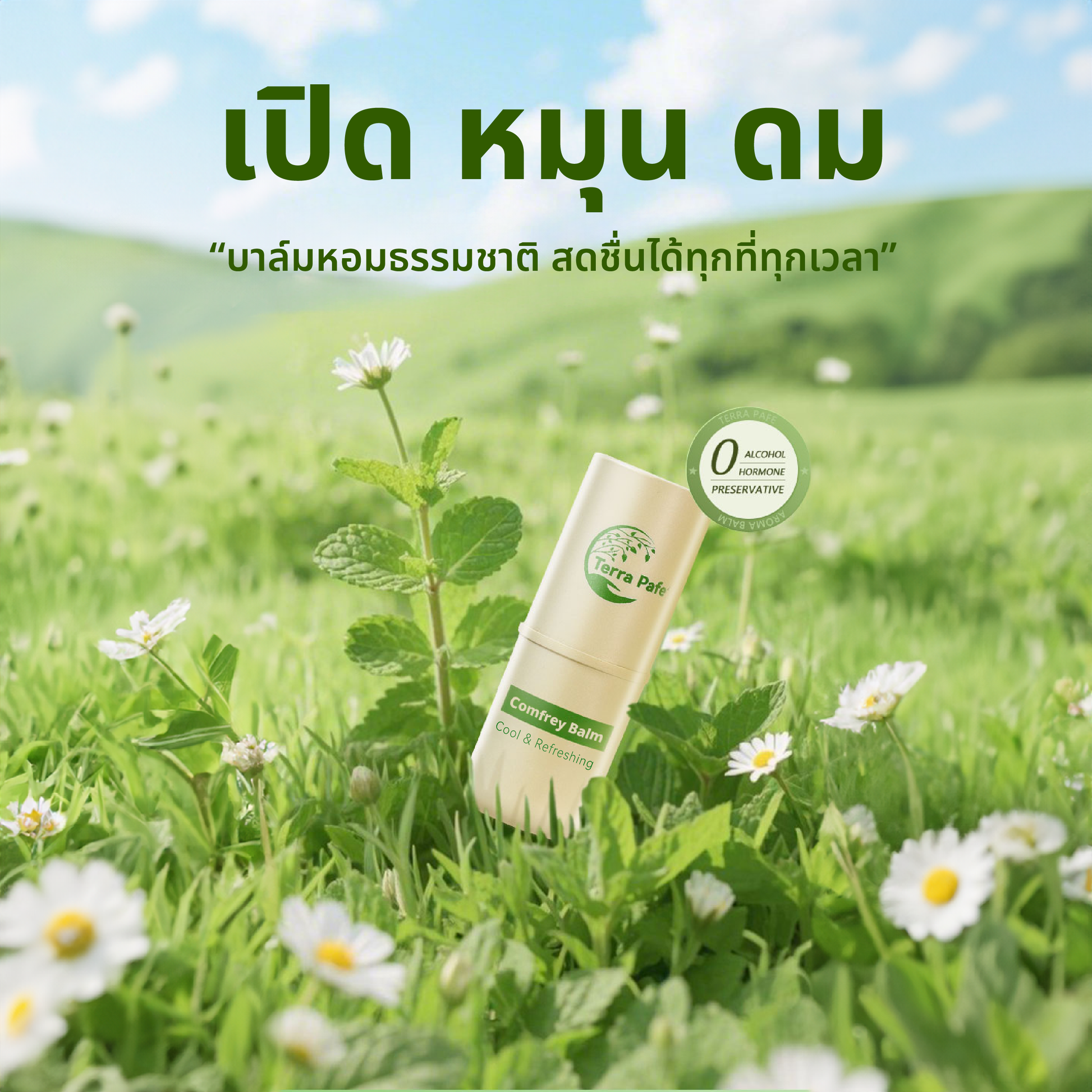 Terra Pafe Comfrey Balm - บาล์มสมุนไพรคอมเฟรย์ กลิ่นหอมอโรม่า สดชื่น ผ่อนคลาย ลดอาการคัน พกพาสะดวก